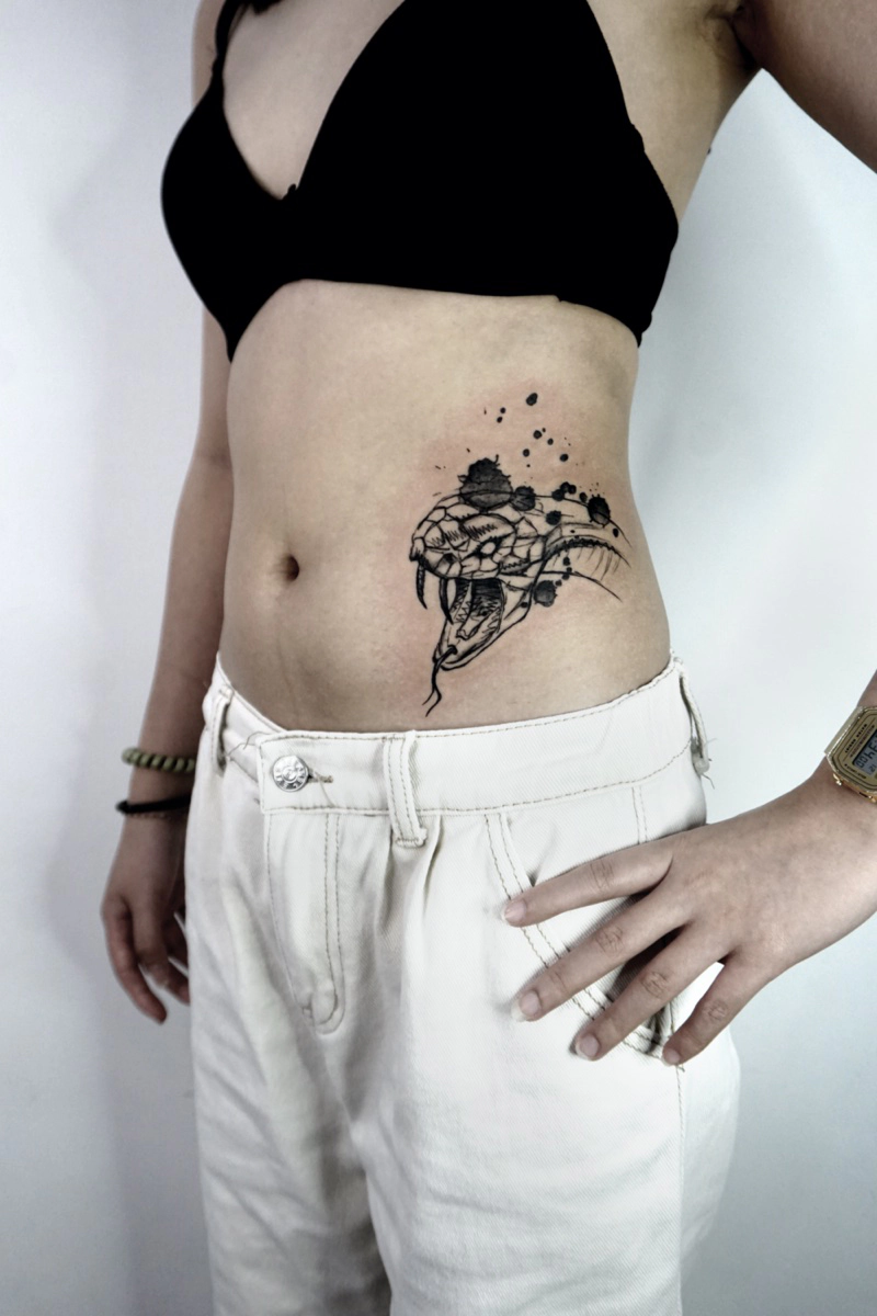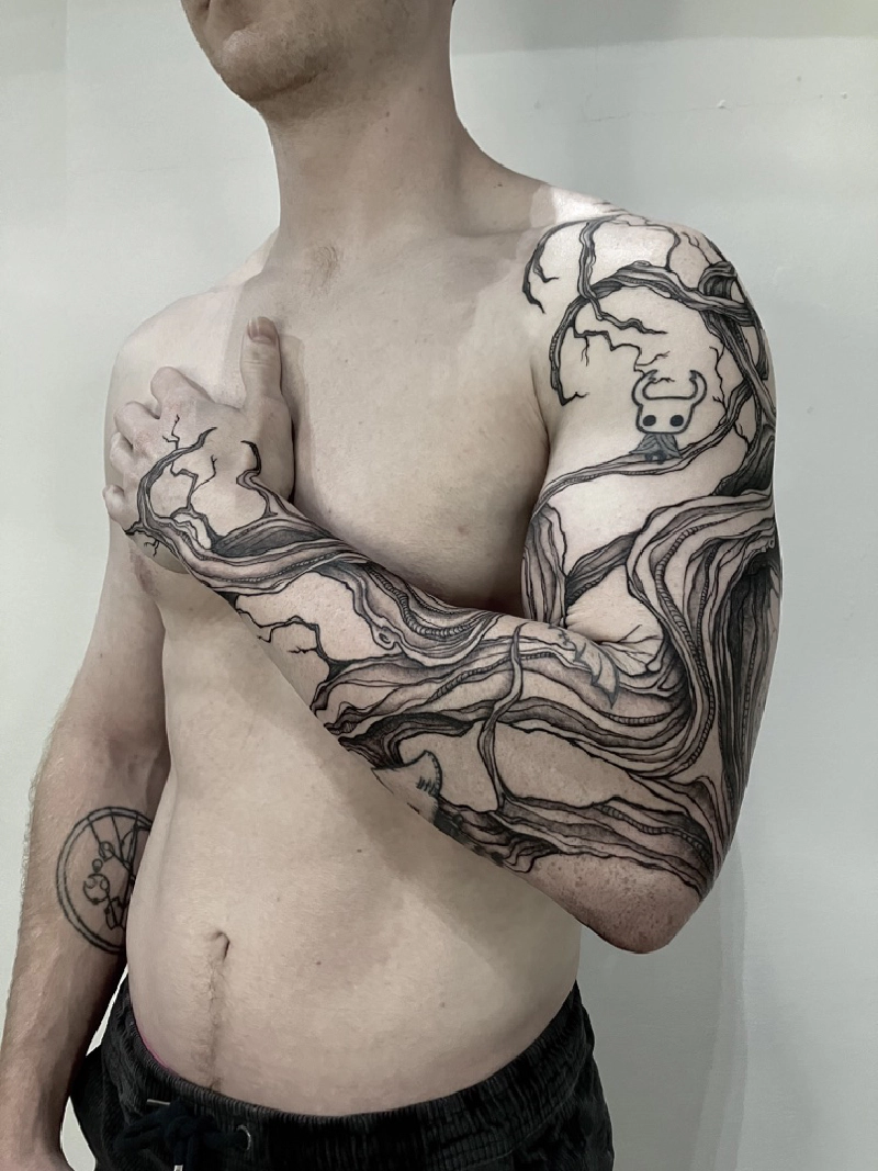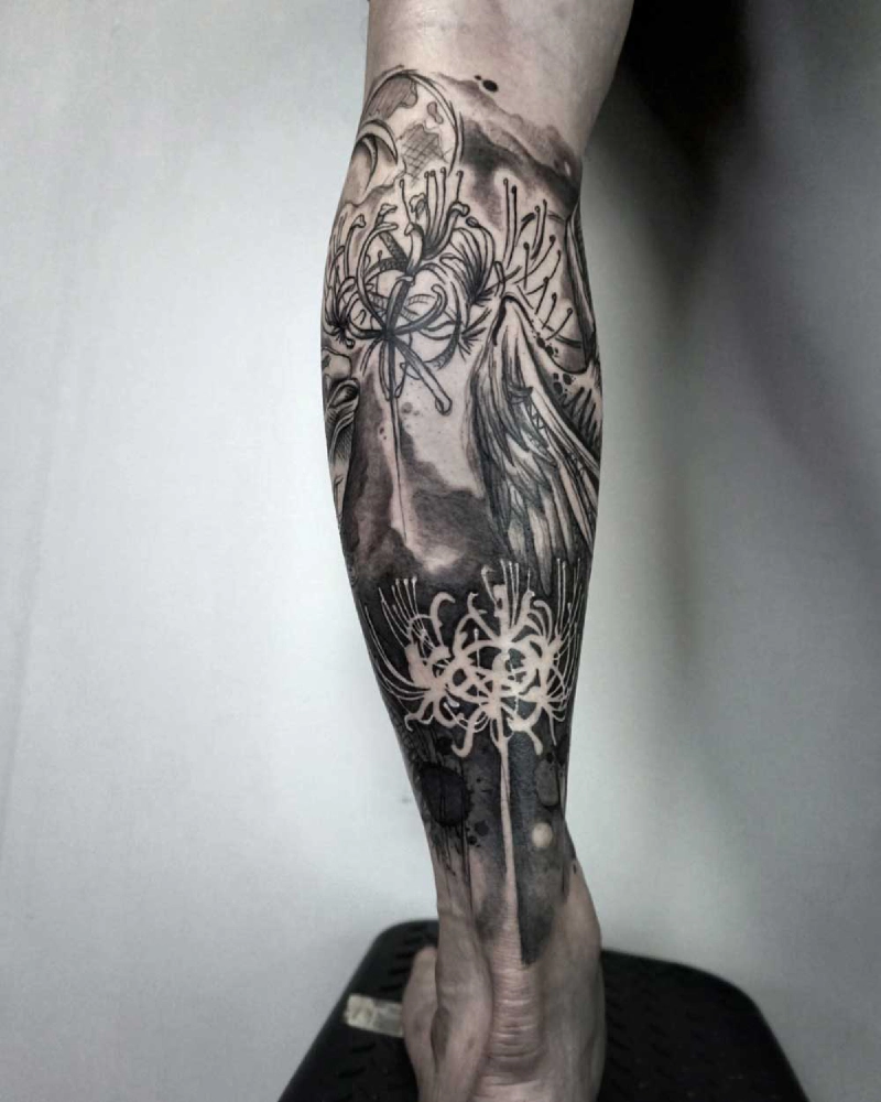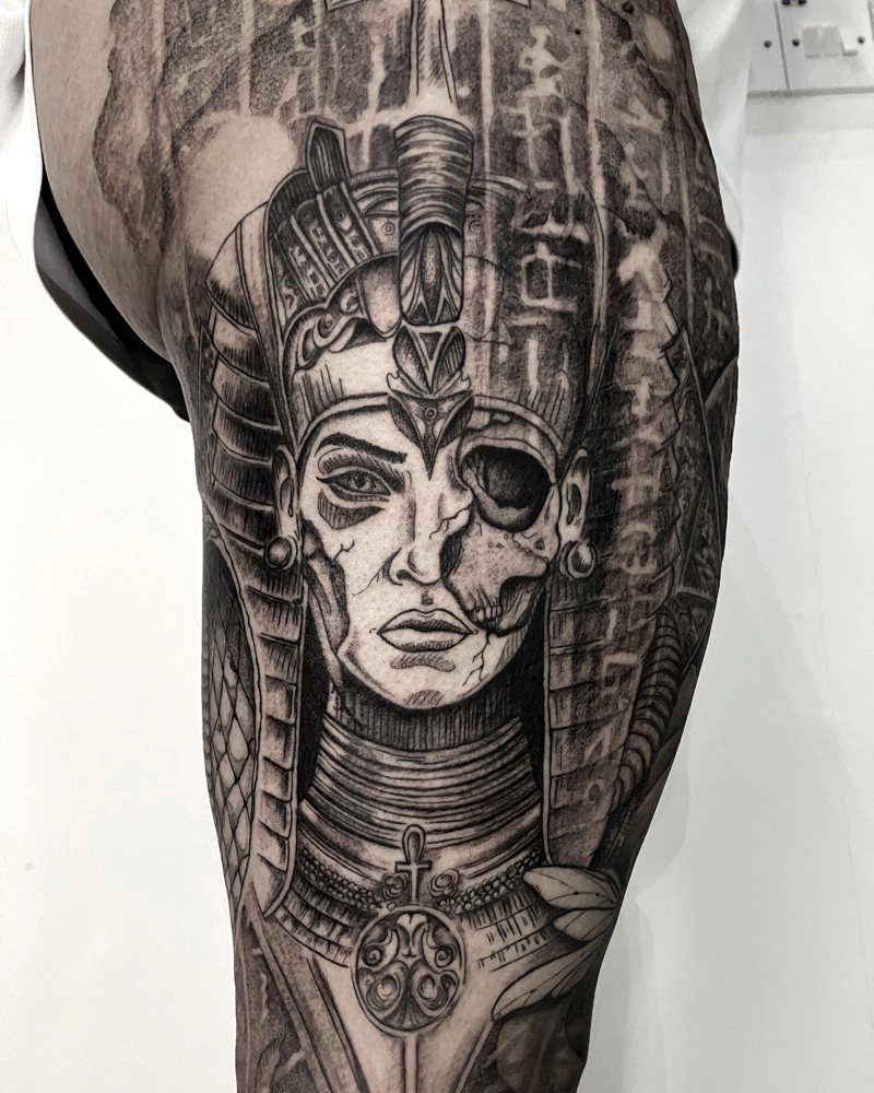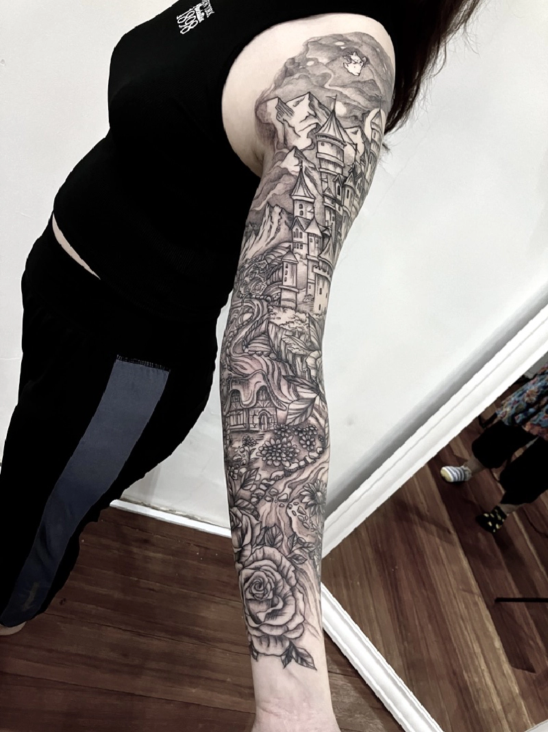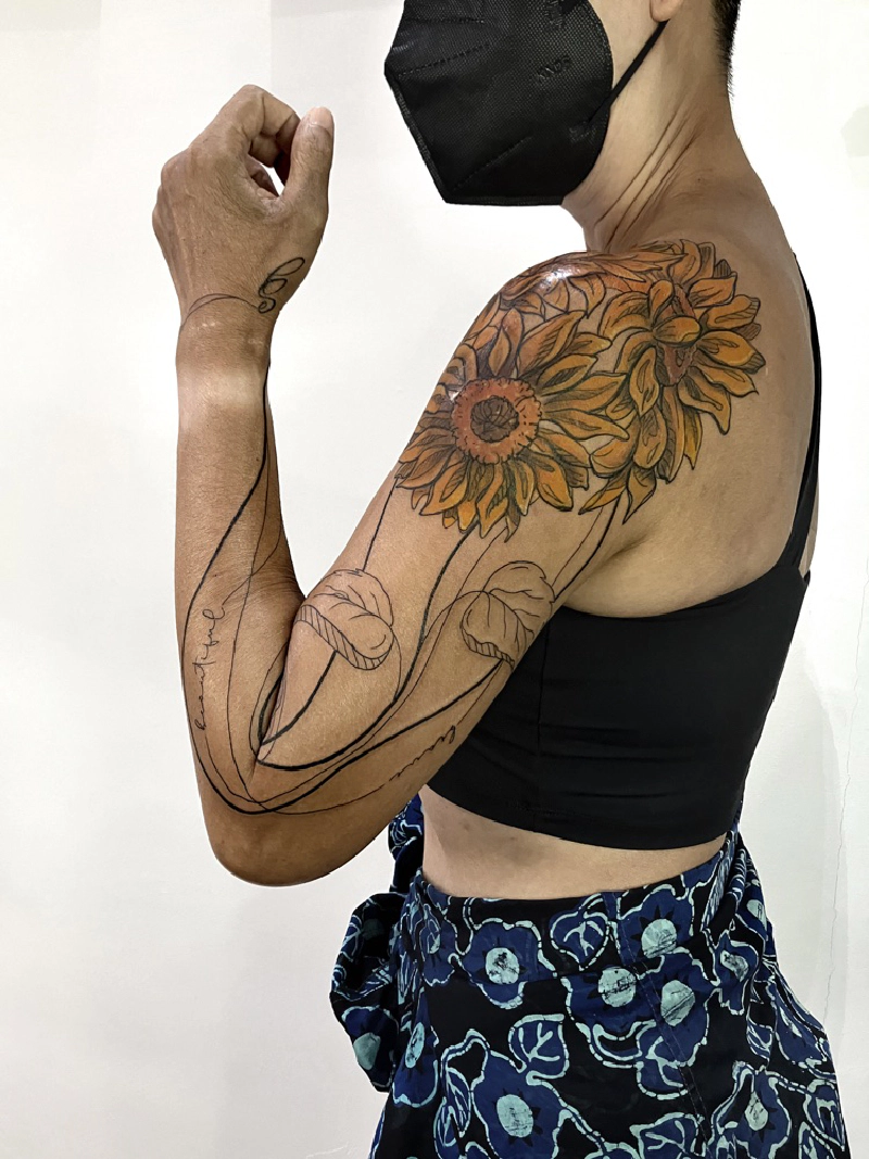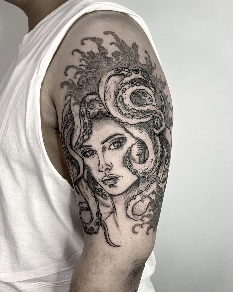 These tattoos are custom designs created in collaboration with each client. Sometimes people come with a clear idea, sometimes just with a theme or feeling. Together we shape it into a design that fits their body and story. Each piece is drawn by hand and tailored to the person who carries it.