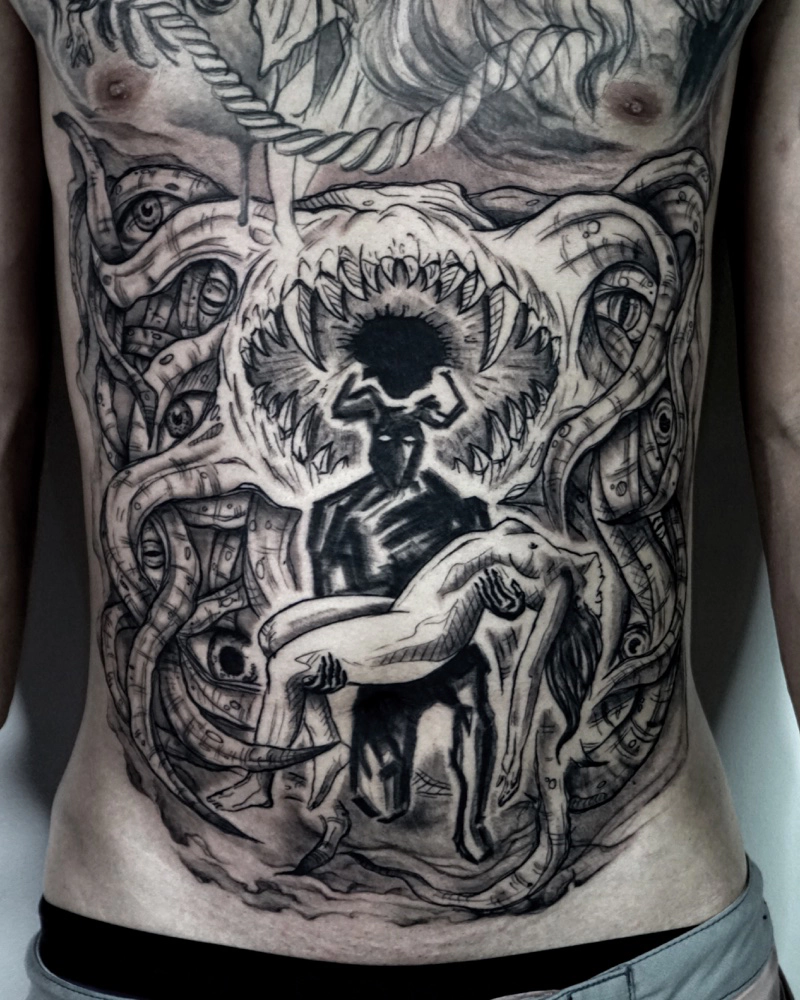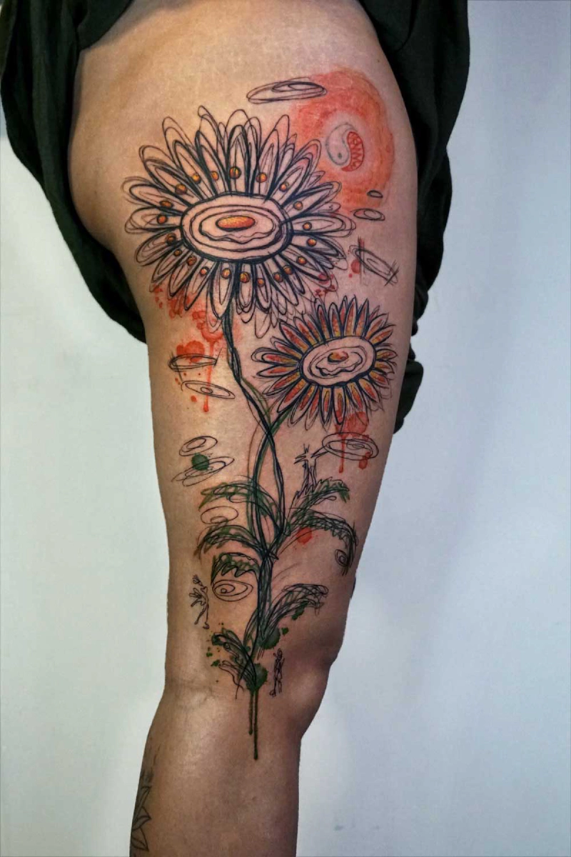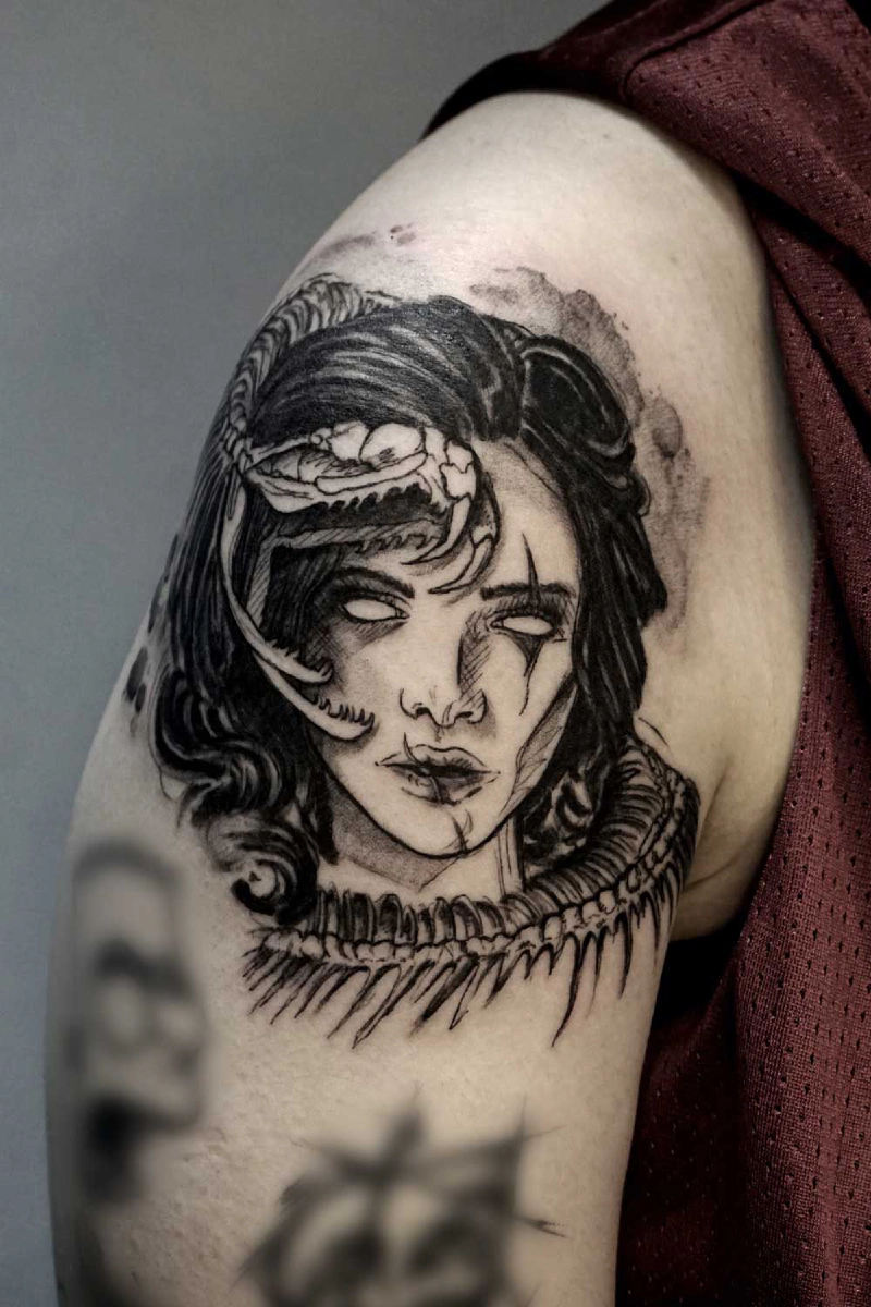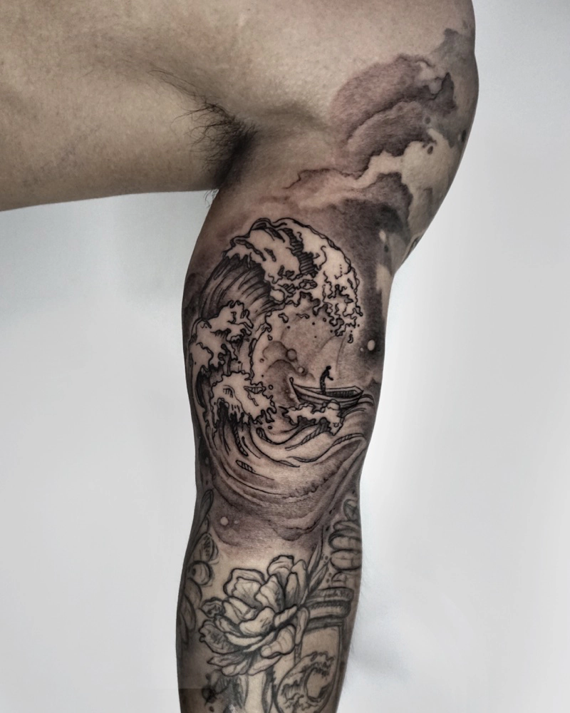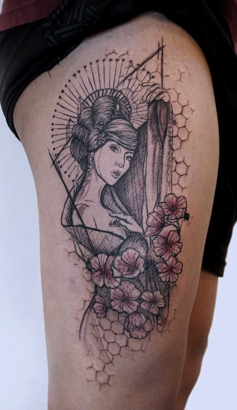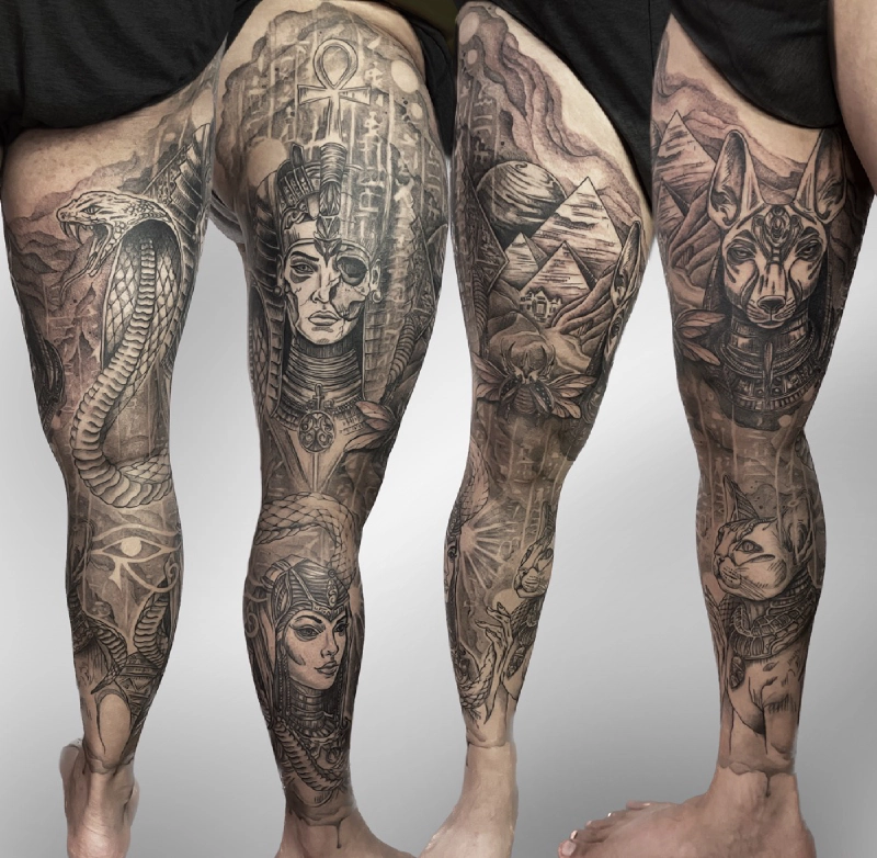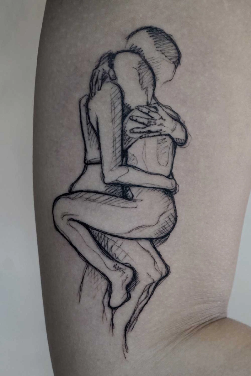 These tattoos are custom designs created in collaboration with each client. Sometimes people come with a clear idea, sometimes just with a theme or feeling. Together we shape it into a design that fits their body and story. Each piece is drawn by hand and tailored to the person who carries it.