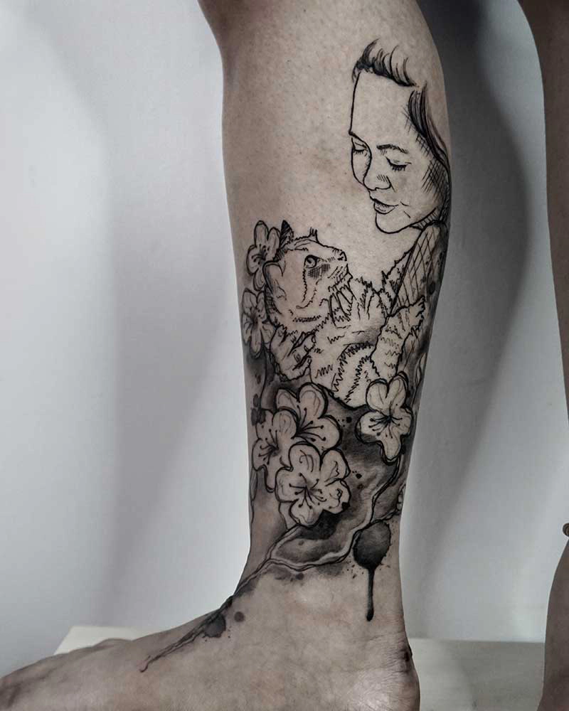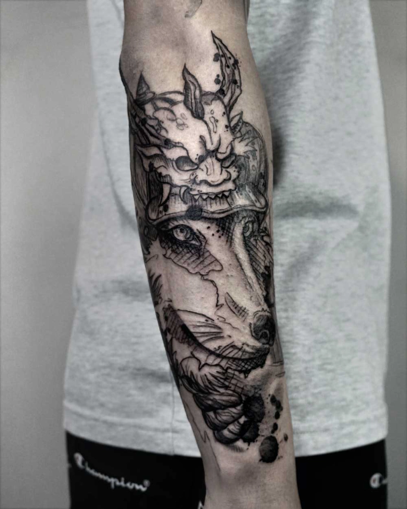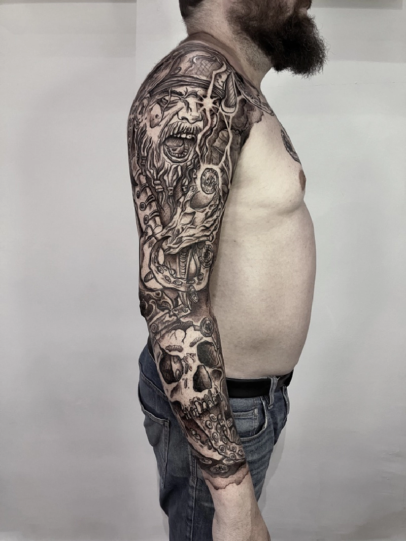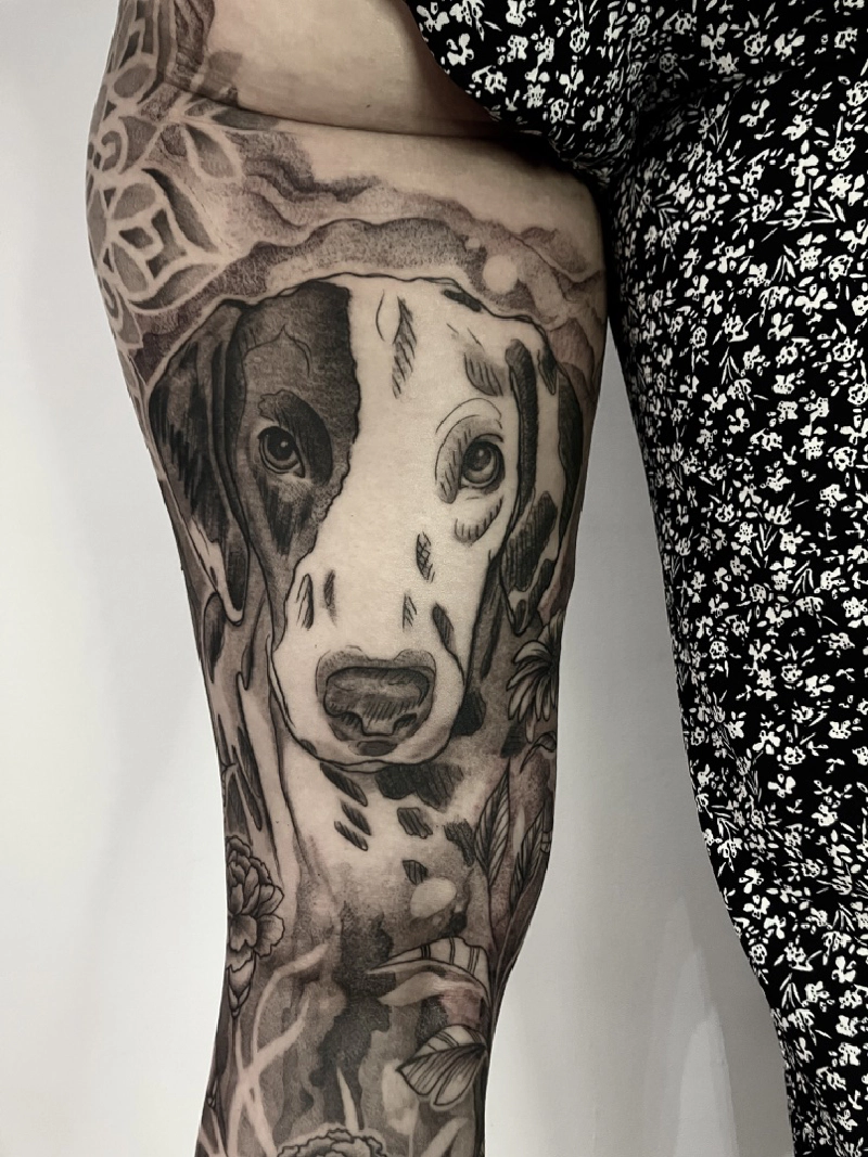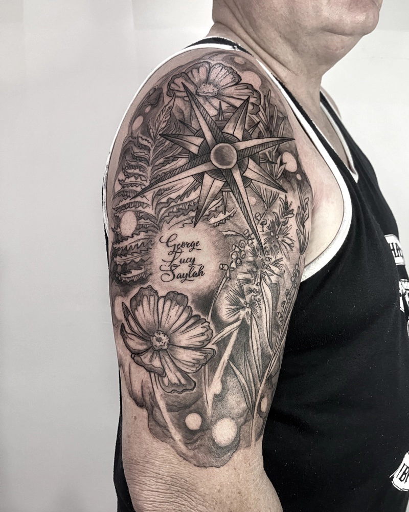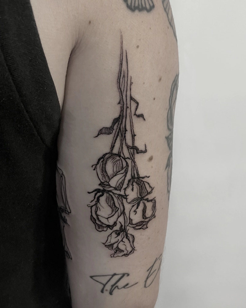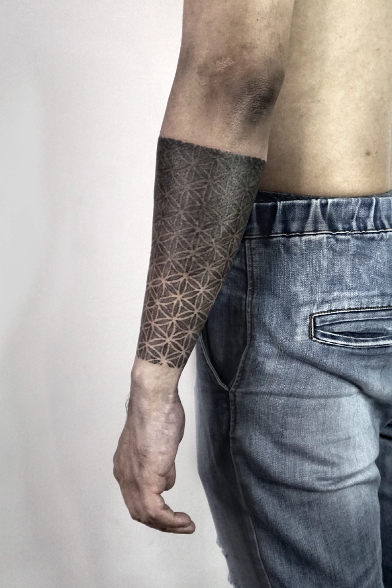 These tattoos are custom designs created in collaboration with each client. Sometimes people come with a clear idea, sometimes just with a theme or feeling. Together we shape it into a design that fits their body and story. Each piece is drawn by hand and tailored to the person who carries it.