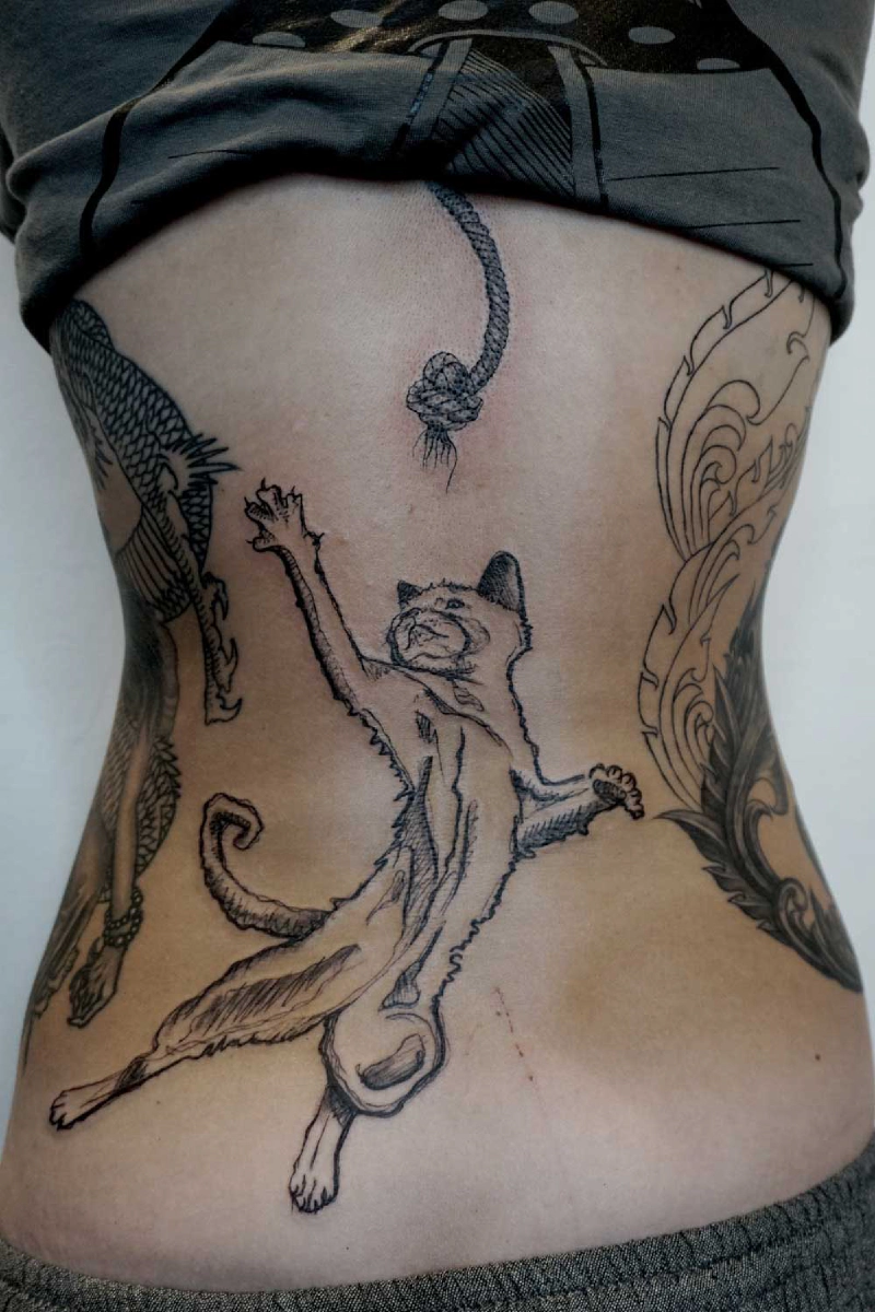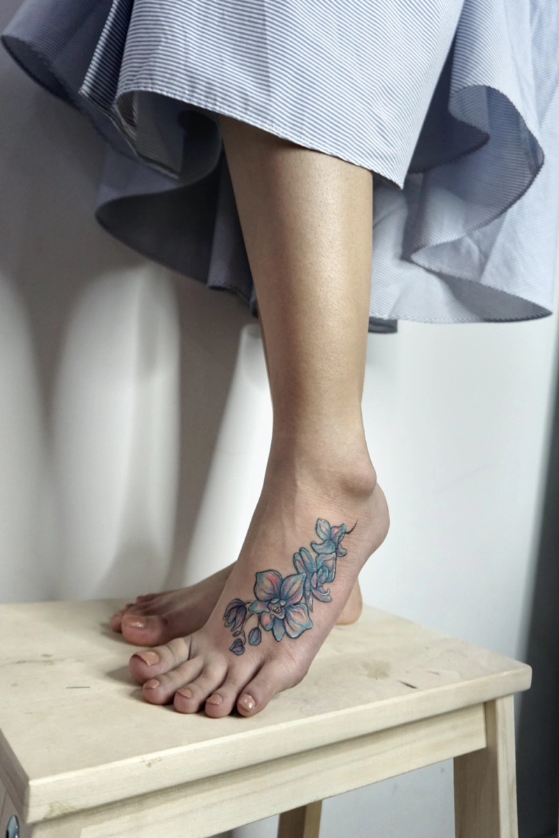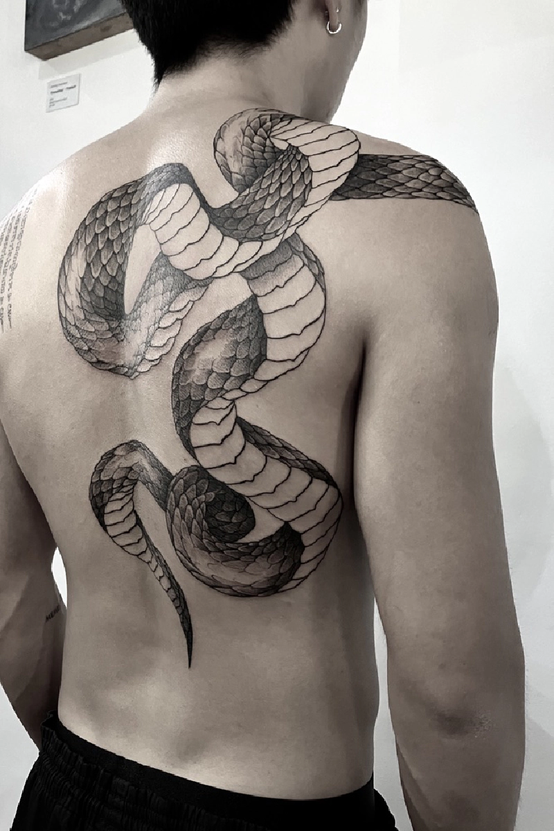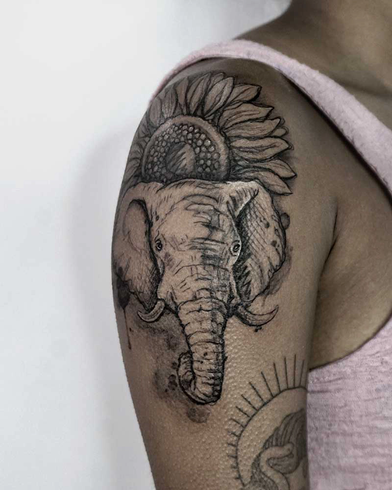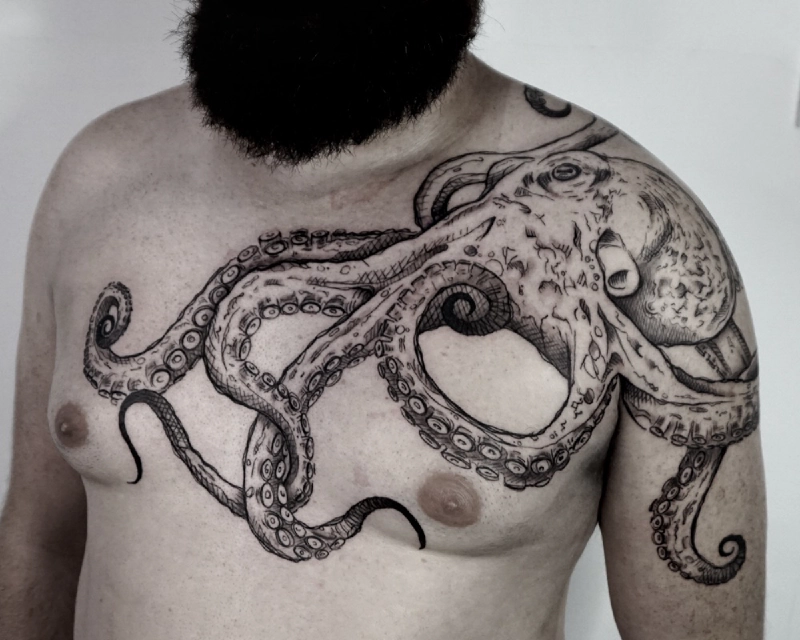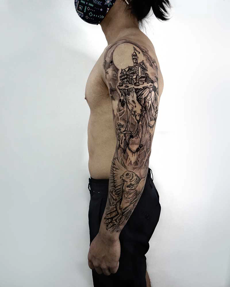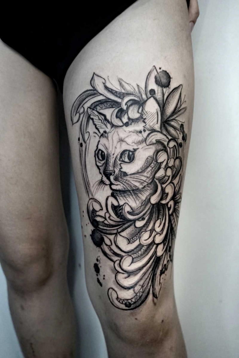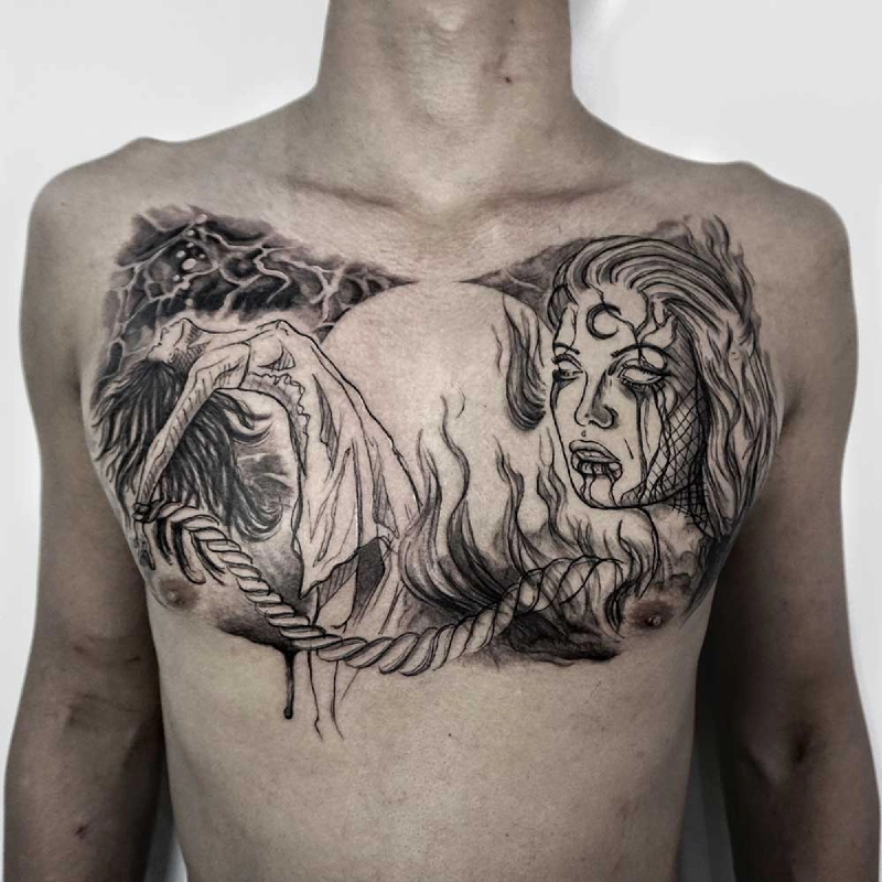 These tattoos are custom designs created in collaboration with each client. Sometimes people come with a clear idea, sometimes just with a theme or feeling. Together we shape it into a design that fits their body and story. Each piece is drawn by hand and tailored to the person who carries it.