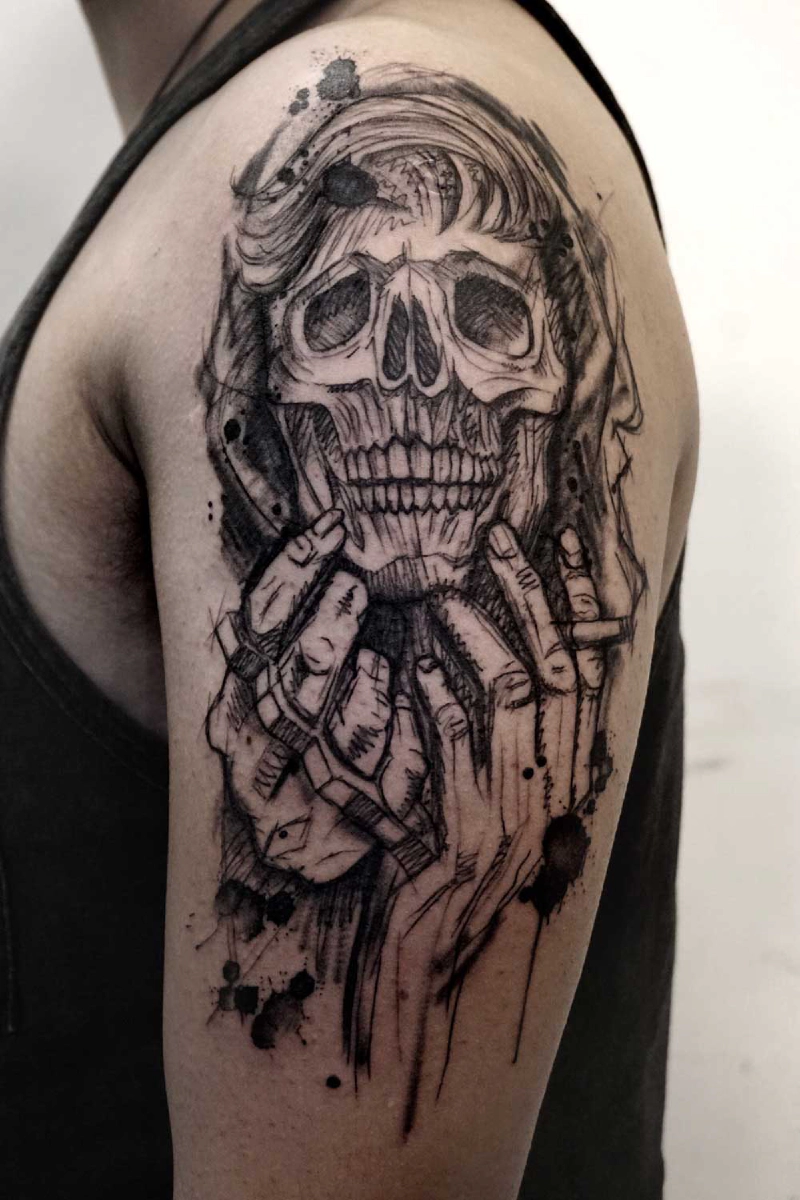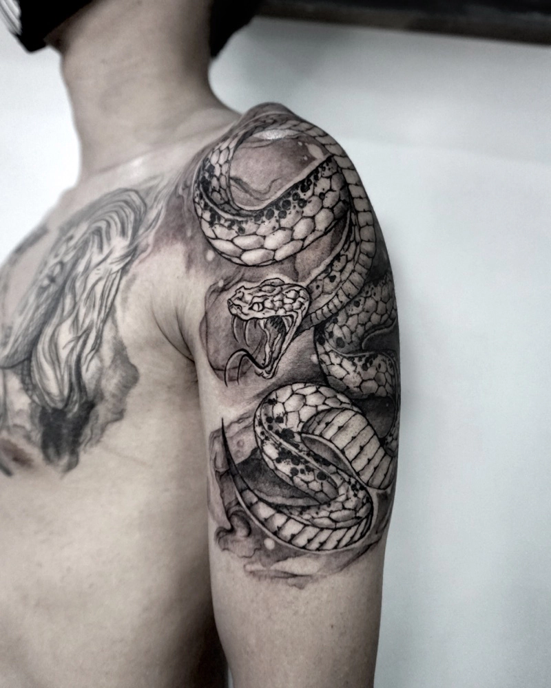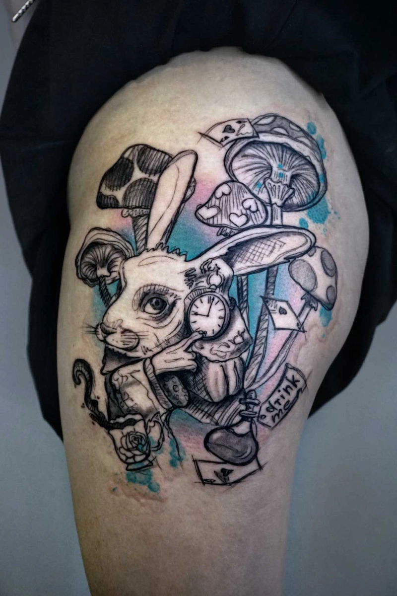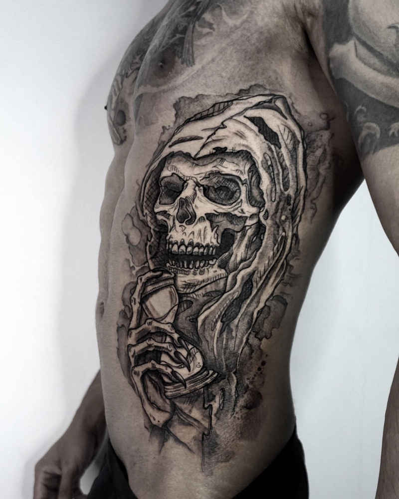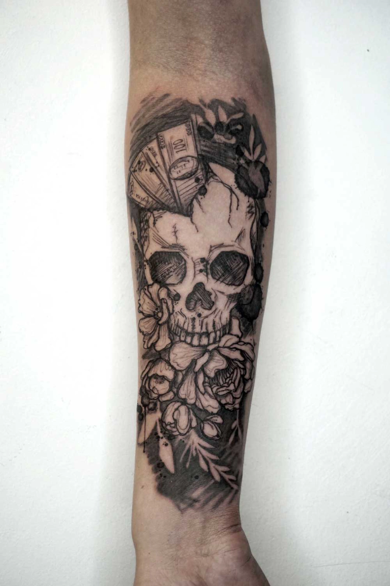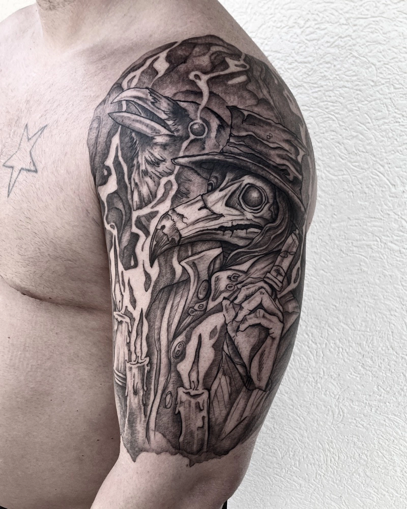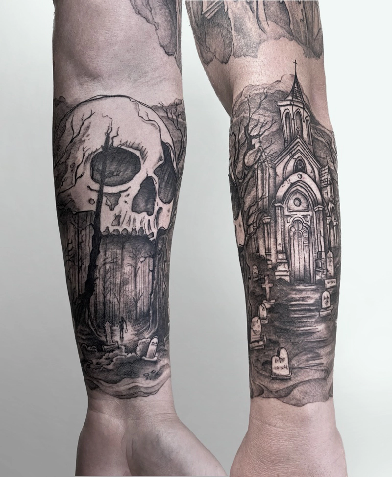 These tattoos are custom designs created in collaboration with each client. Sometimes people come with a clear idea, sometimes just with a theme or feeling. Together we shape it into a design that fits their body and story. Each piece is drawn by hand and tailored to the person who carries it.